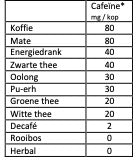 Als je gevoelig bent voor cafeïne voor het slapen gaan, kan je ’s avonds het beste rooibos of kruidenthee drinken. Deze bevat geen cafeïne.